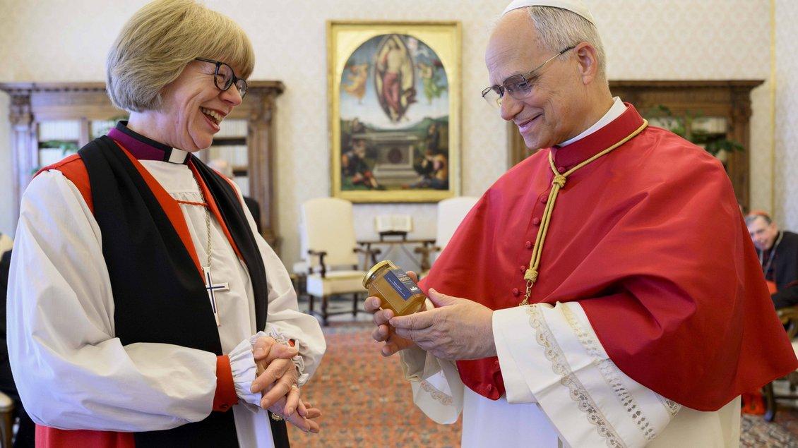 Pierwsze spotkanie Leona XIV i abp Sarah Mullally odbyło się zaledwie po ingresie abp Mullally do katedry w Canterbury i w 60. Rocznicę historycznego spotkania papieża Pawła VI i abp. Michaela Ramsey’a. Zgodnie z tradycją zapoczątkowaną przez poprzedników abp Mullally założyła na spotkanie z Leonem XIV pierścień biskupi, który abp. Ramseyowi podarował Paweł VI.