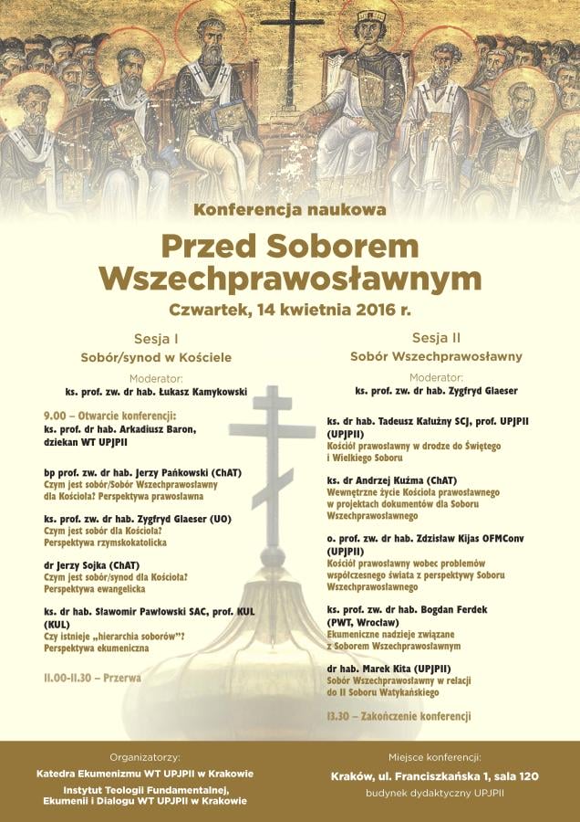 W czerwcu br. na Krecie ma odbyć się Wielki Sobór Kościoła Wschodniego – najwyższe zgromadzenie świata prawosławnego, pierwsze tej rangi od ponad 13 wieków. O genezie, zadaniach i nadziejach związanych z Soborem, widzianych z perspektywy prawosławnej, rzymskokatolickiej, ewangelickiej i ekumenicznej, będą mówić 14 kwietnia br. w Krakwowie uczestnicy konferencji naukowej „Przed Soborem Wszechprawosławnym”.