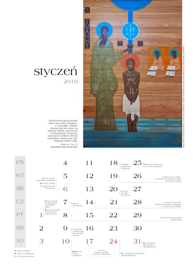 W 2016 roku będzie obchodzona 1050. rocznica chrztu Polski. Z tej okazji krakowskie Wydawnictwo ZNAK wydało ścienny kalendarz ekumeniczny na rok 2016. W kalendarzu zebrane zostały święta rzymskokatolickie, ewangelickie i prawosławne oraz wydarzenia ekumeniczne...