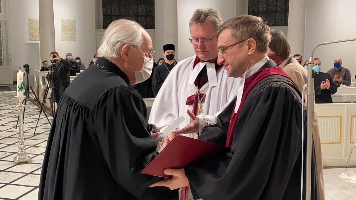 Na początku nabożeństwa odbyło się wręczenie Nagrody PRE bp. Zdzisławowi Trandzie, biskupowi-seniorowi Kościoła ewangelicko-reformowanego.